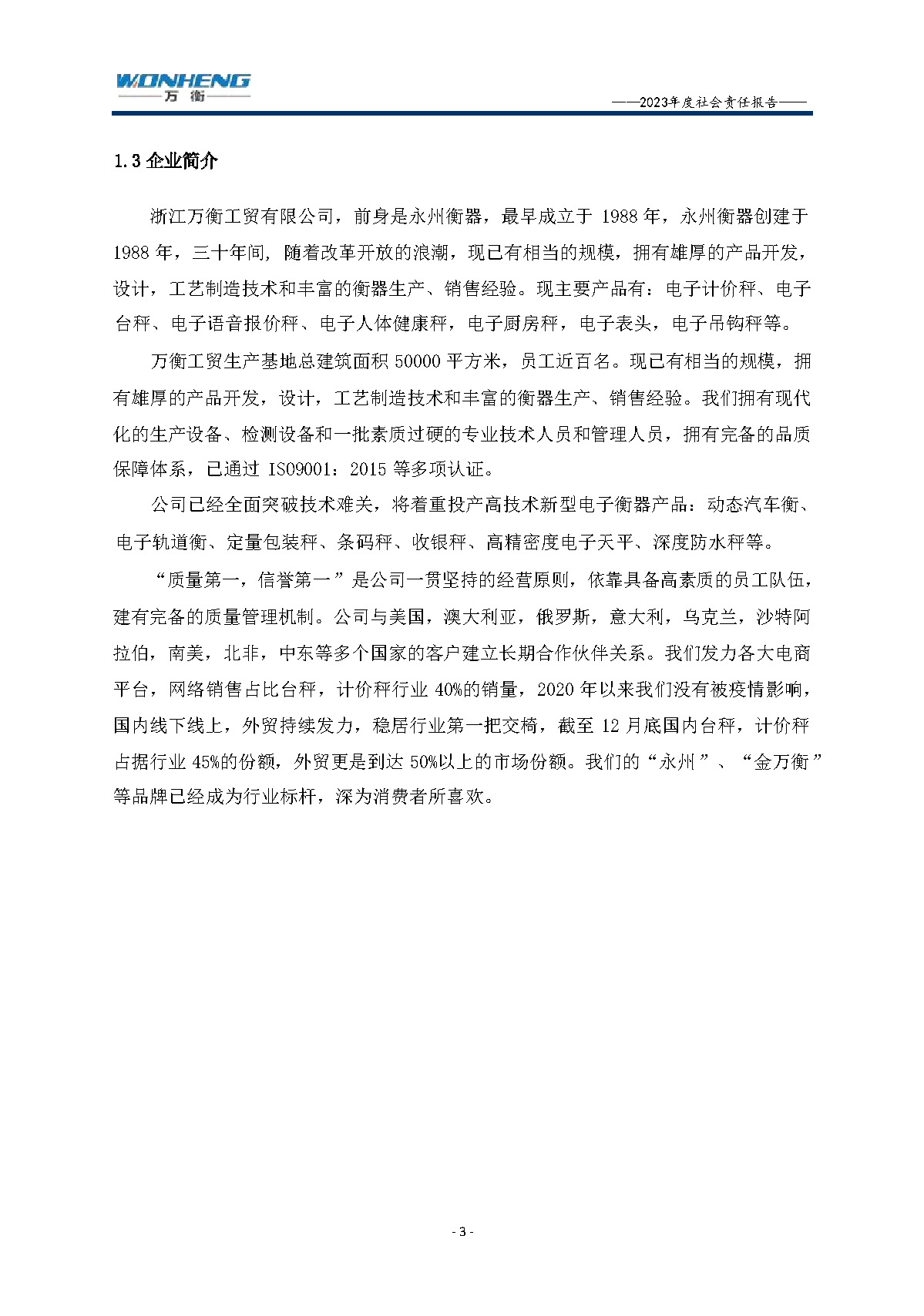 浙江萬衡工貿有限公司2023年度社會責任報告